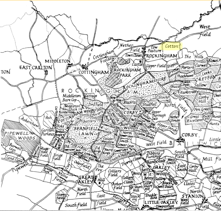 'Cotes' or 'Coton' off the Rockingham to Gretton Road, shown on the
